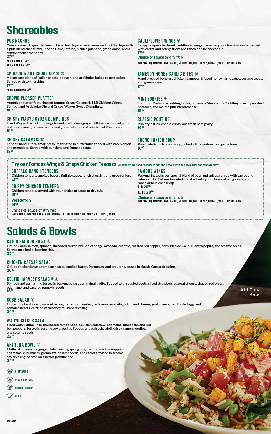 *Both the food and beverage menu pricing vary per location.