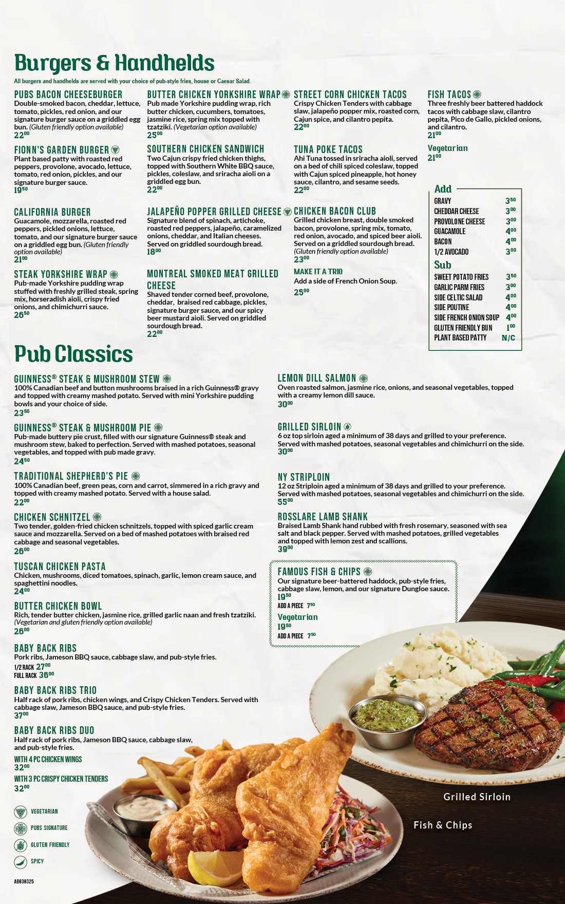 Fionn MacCool’s Menu